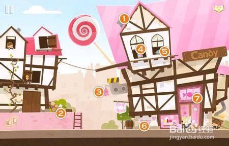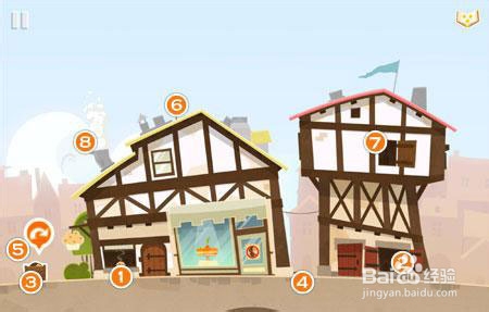 偷走了蛋糕,你会来到屋顶,这个阶段,小白鼬会出现在蛋糕店的橱窗里,点走它;捡走屋顶上的风车,然后点掉厨师屋顶上的烟囱,从黄色屋顶的右侧下到地面;