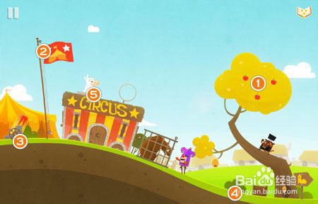 点击树上的三枚红苹果,树上的猴子会玩戏法般的接住它们,然后甩出自己的帽子,捡起帽子;
