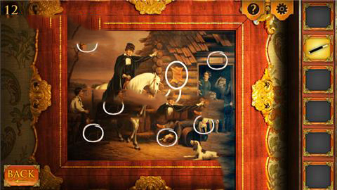 3D固定视角模拟真实环境游戏采用3D固定视角的画面形式,与传统的3D游戏有所不同,解密类游戏基本都无法自由移动视角,只能切换为几个不同的固定视角来观察整个密室。游戏在画面上面并不算真实,虽然所有的物品都按照现实比例在描绘,但还是很容易看出它的效果并不太好,不过相比很多卡通作品来讲,本作算是高大上的画面表现了。