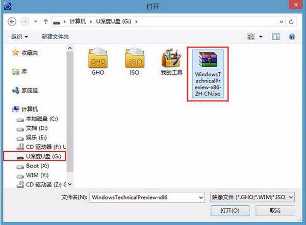 1、将准备的的win10系统镜像包存储到已做好的u深度u盘启动盘根目录中: