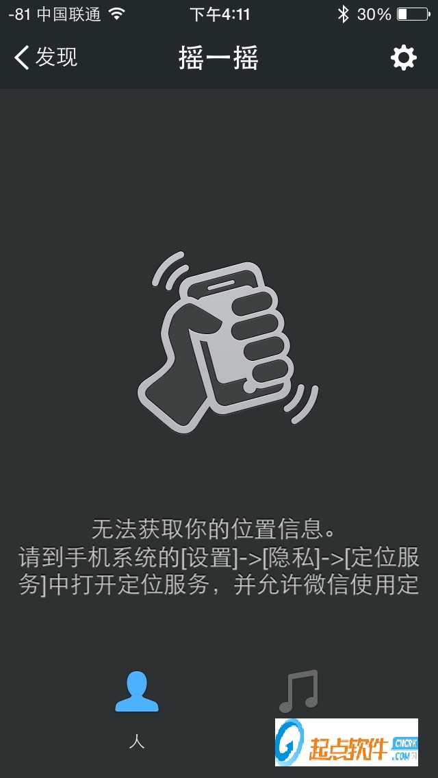 如果觉得结交附近的人比较尴尬,可以试试摇一摇,这也需要开启地理位置信息。打开”摇一摇“,晃动一下手机,就可以摇到在同一时间也在无聊中摇摇的人。