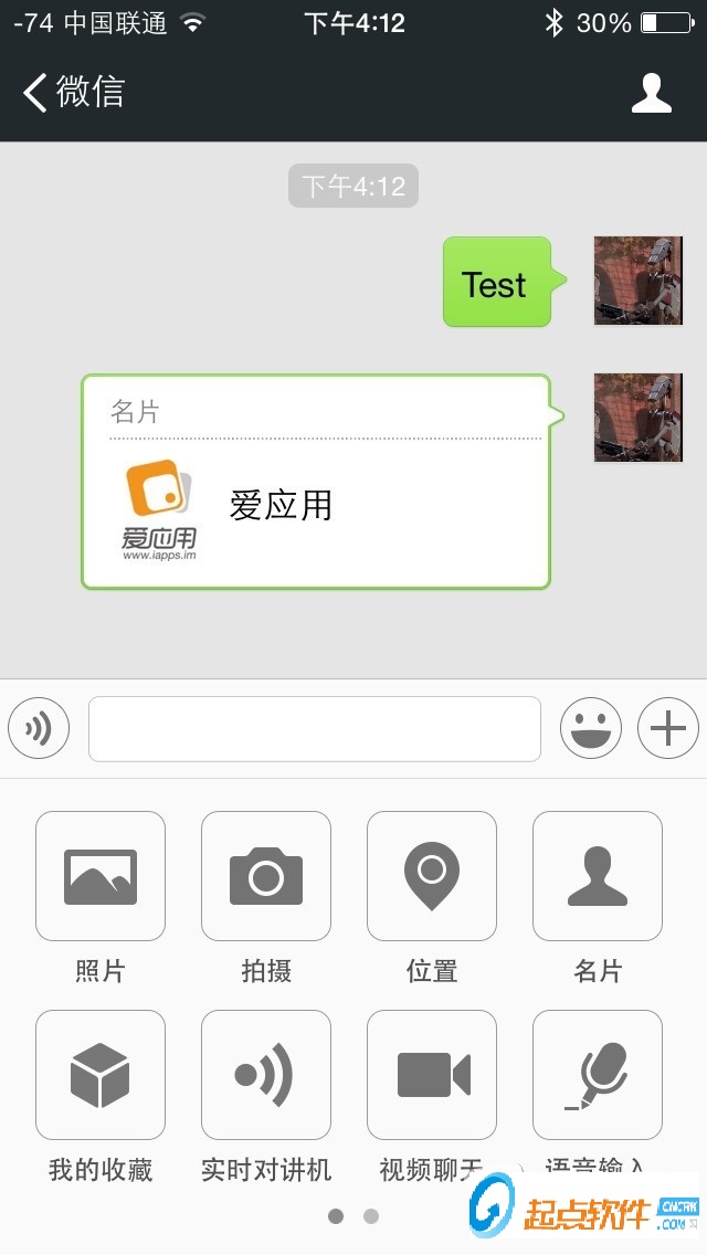 插入图片和其他聊天软件一样, 可以发送相片集里面的照片或者直接拍摄照片发送。