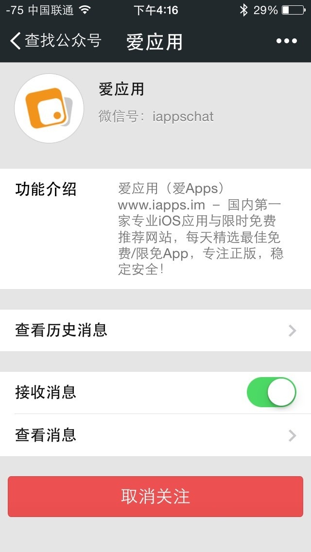 除了和个人聊天外,很多公司和平台(比如咱们的爱应用)都有专属的公共账号,用于定期发布一些消息给感兴趣的用户。大家只需在添加朋友的界面下方点击“查找微信公共账号”,输入“爱应用”,就可以找到小黄标的我们。因为账号有重复现象,一定要认准黄色小框框哦!