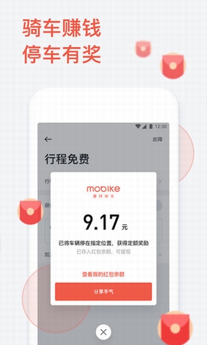 摩拜共享电单车app是一款由摩拜全新推出的共享出行软件,该软件的共享单车增加了电力系统,自行车插上能量芯就变成电动车,一次可以续航7-15公里,满足用户的日常出行。