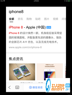 简单搜索调用的搜索引擎为百度,但是搜索结果却有些不同,这个我们下边会做比较。语音识别输入时,检测到用户停止说话后,简单搜索就会自动完成搜索操作,然后将搜索结果显示在屏幕上。