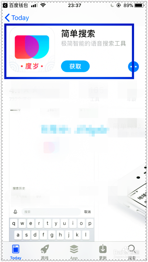 养这里以iPhone手机端的百度简单搜索App作为操作截图,供参考,打开手机进入Appstore,点击搜索“简单搜索”。