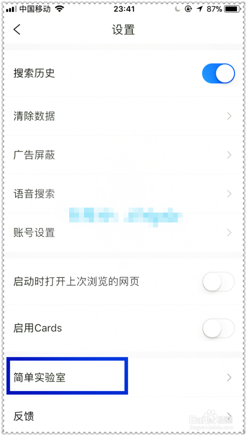 登录完成后点击“设置”,在设置界面中点击“简单实验室”。