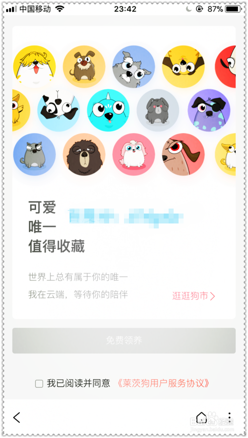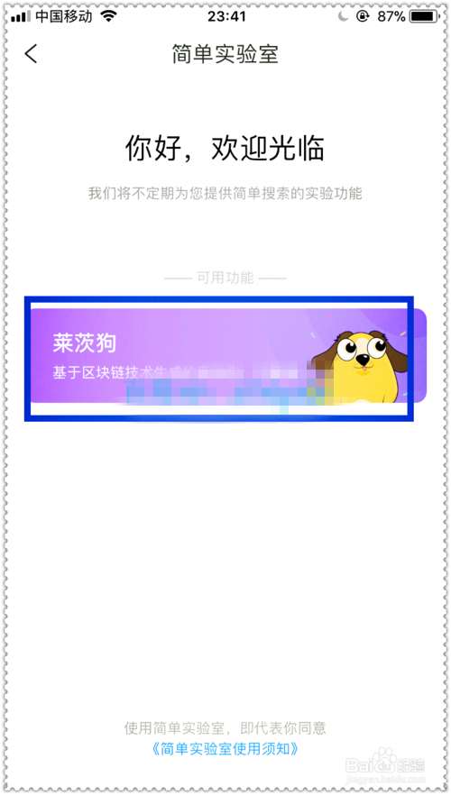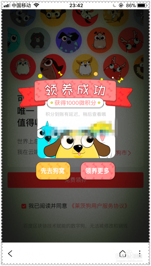 在实验室界面中可以看到莱茨狗的入口,点击进入,进入领取界面,同意相关操作,点击免费领养,就可以领到一只莱茨狗了。