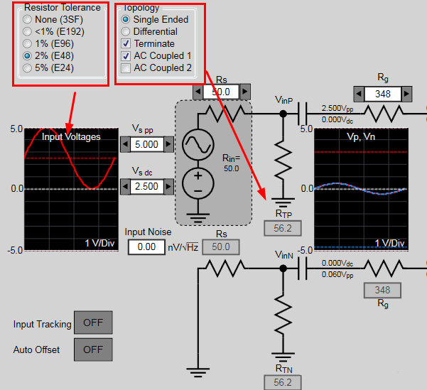 5、使用简单的"点击"方式,便于灵活选择ADI差分放大器、各种输出负载配置和电阻容差。