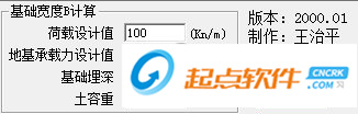 2、在软件主界面输入的基本参数有:荷载设计值,地基承载力设计值,基础埋深,土容重,点击“基础宽度”按钮就能确定出基础宽度;