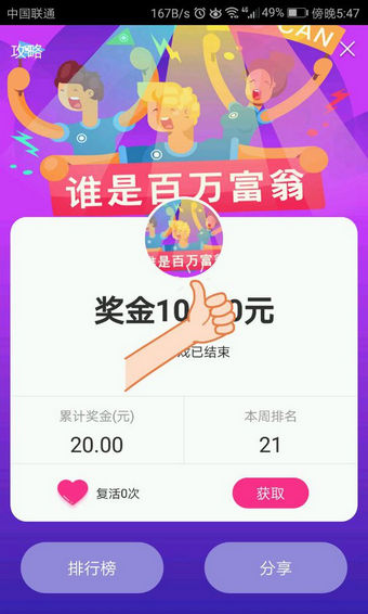 5. 邀请新用户参与一次答题,你就能获得复活道具。