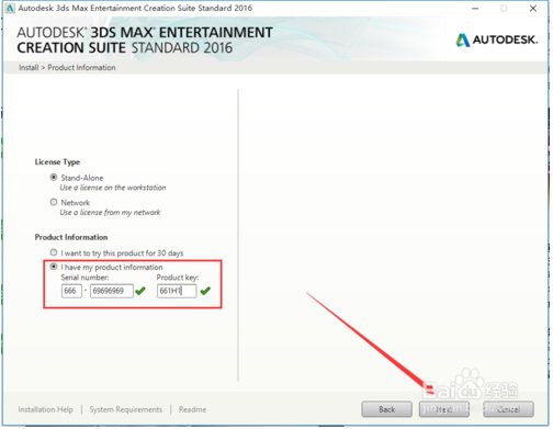 这里比较关键,在这里要输入序列号“666-69696969”,和Product key(安装秘钥):661H1,选择下一步