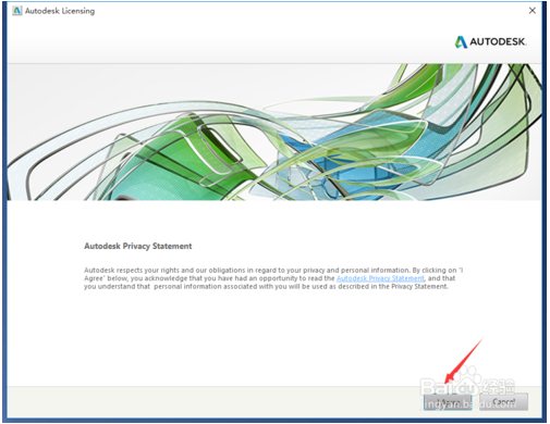 双击打开Autodesk 3d max 2016运行,运行后会自动弹出注册的页面,点击我同意。