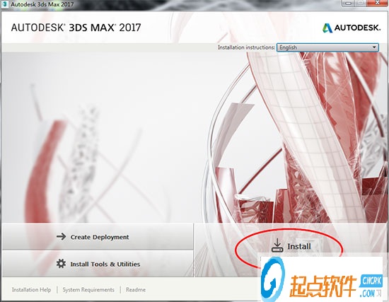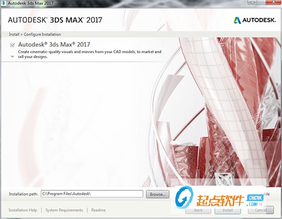 4、选择3ds Max2017的安装功能以及安装目录,点击“install”