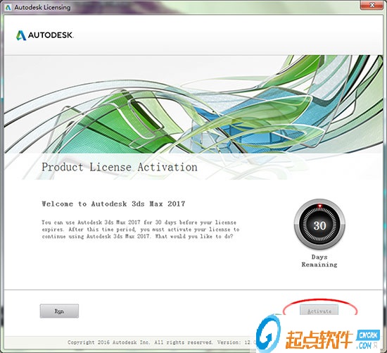 6、安装完毕后,断开计算机的网络连接,运行桌面3ds Max2017快捷方式,点击“Acitvate”激活