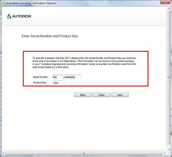 7、输入序列号“066-066666666”,输入密钥“128I1”