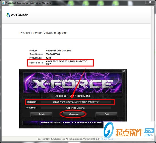 9、将“申请码”复制到注册机的第一项中,点击“Generate”,生成激活码