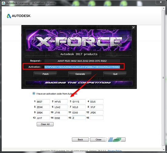 10、点击“I heve an actvaton.......”将生成的激活码复制到入内,点击NEXT