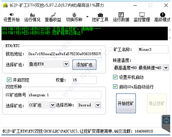长沙矿工eth双挖N卡支持单挖ETH、ETC、ZEC、XMR,支持双挖组合ETH-DCR、ETH-LBC、ETH-PASC、ETH-SC、ETC-DCR、ETC-LBC、ETC-PASC、ETC-SC,并且提供配套监控器用来监控和批量操作挖矿端,方便管理矿机。能够实现对挖矿管理完善的流程控制,节省费用和时间,提高用户满意度。【版本说明】