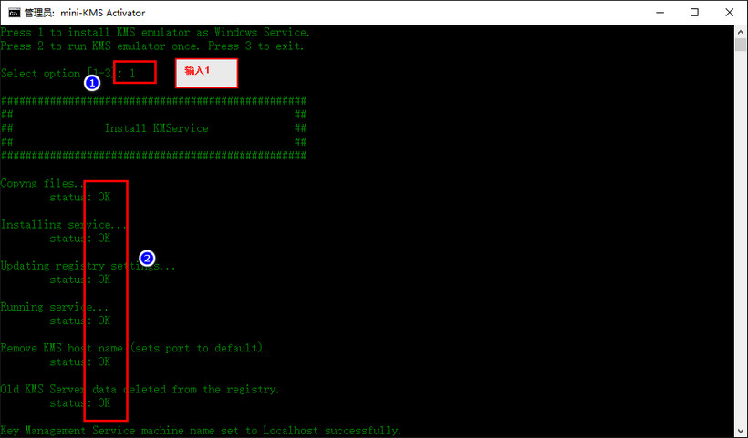 12.最后,点击“Activate office 2010 VL”,输入“1”.按任意键退出即可成功激活.