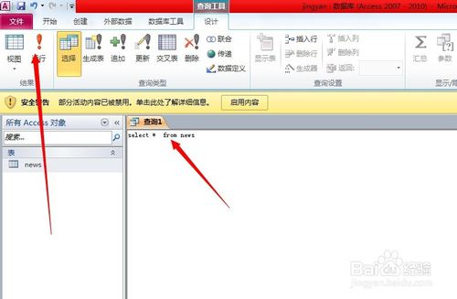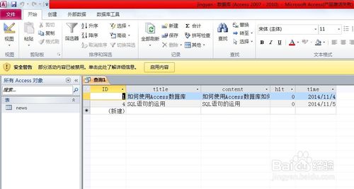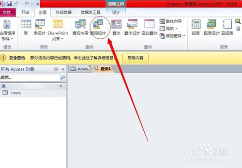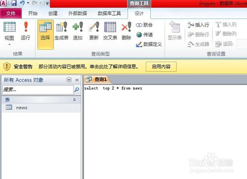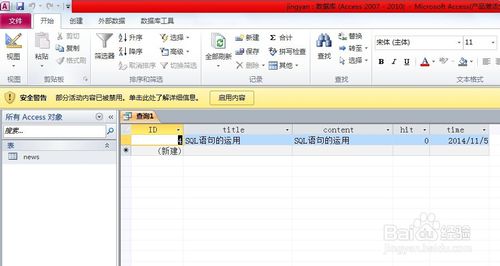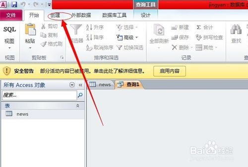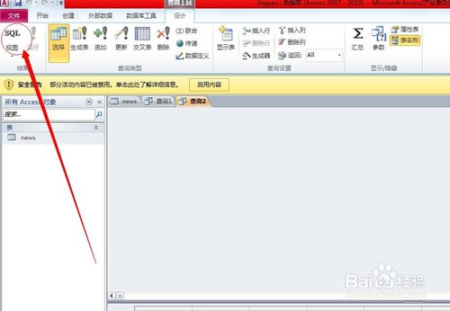 点击头部导航:创建-->查询设计-->关闭弹出的窗口-->点击左侧的“SQL”-->进行sql命令