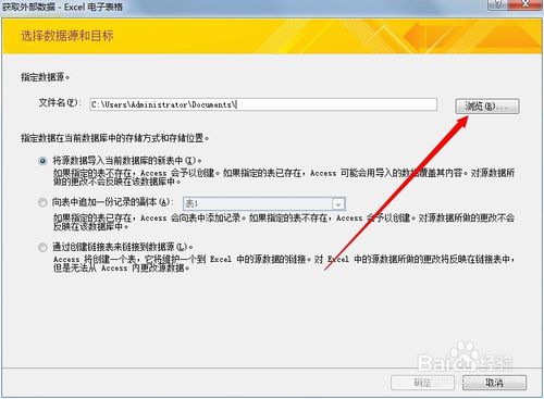 点击浏览,找到存放Excel表格的路径,具体看以下操作