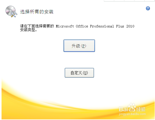 access和Word,ppt一样都是office的一部分,我们要想安装access就必须先下载完整的office2010.然后进行安装。打开安装程序后,选择自定义进行调试。