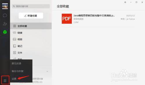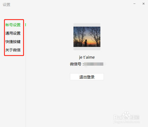 然后点击设置按钮,弹出设置页面,此页面包含微信电脑版的所有设置项。
