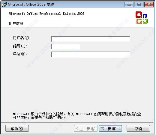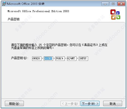 1、access2003完整版需要借助于office2003软件进行安装,所以小编提供的软件包是office2003,双击setup.exe进行安装。2、安装程序运行成功后,会需要产品密匙来进行下一步安装,这里提供一个产品密匙:GWH28-DGCMP-P6RC4-6J4MT-3HFDY,输入完成后点击下一步继续安装。