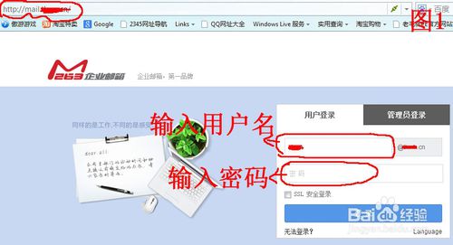 1、打开网页浏览器,在地址栏中输入“mail.公司域名”,然后在弹出的页面中输入自己邮箱的用户名及密码进行登录。如图1所示。