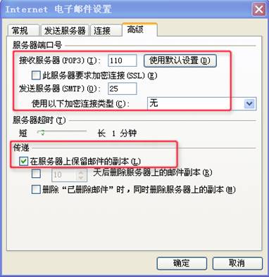 请注意,您需要在“传送”选项勾选“在服务器上保留邮件副本”,以保证所有邮件不会因为使用客户端收取后而从服务器上删除。