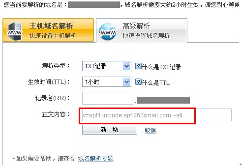 (4)如果您需要添加TXT记录,可以按以下图式添加。