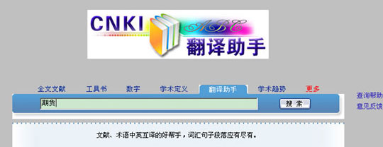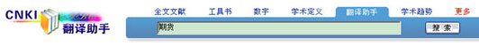 中国知网翻译助手是"中国知网"开发制作的大型在线辅助翻译系统,该系统汇集从CNKI系列数据库中挖掘整理出的800余万常用词汇、专业术语、成语俚语等中英文词条以及1500余万双语例句,形成海量中英在线词典和双语平行语料库。数据实时更新,内容涵盖自然科学和社会科学的各个领域,可以为用户提供英汉词语、短语的翻译检索,还可以提供句子的翻译检索,是目前最优秀的专业术语翻译软件。不同于一般的英汉互译工具,cnki翻译助手是以CNKI总库所有文献数据为依据,不但对翻译需求中的每个词给出准确翻译和解释,给出大量与翻译请求在结构上相似、内容上相关的例句,方便您参考后得到最恰当的翻译结果。另外cnki翻译助手使用界面贯穿人性化设计理念,操作简单明了,您只需在对话框输入需要翻译的中英文词句内容,系统就会自动分析用户的翻译需求,给出翻译结果。