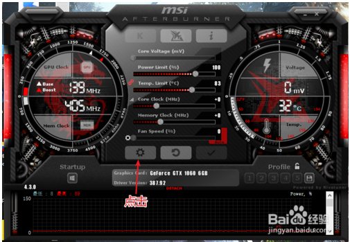 打开MSI Afterburner,点击齿轮形状的设置按钮