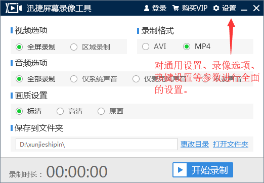 第五步、启动软件后,设置视频、音频、格式、画质等,就可以开始进行录制了。