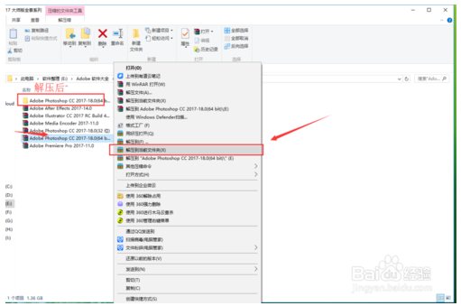 我们第一步先解压下载好的软件。我这边直接解压到当前文件夹,方便安装。我这里以64位电脑操作系统来安装示例。32位电脑系统的朋友一样是同理安装哈。