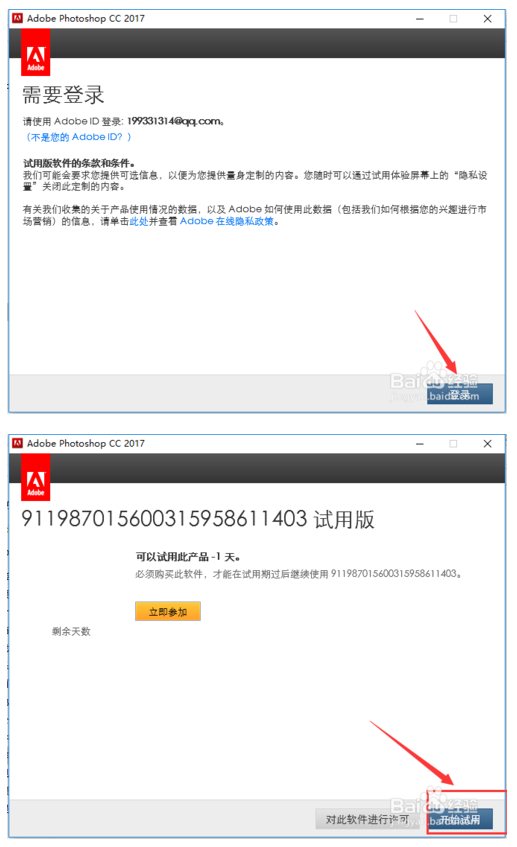 Creatice Cloud安装程序安装好软件之后,会自动启动软件,在启动软件的时候需要进行软件的ID账号登录。登录之后进行开始试用,打开软件。