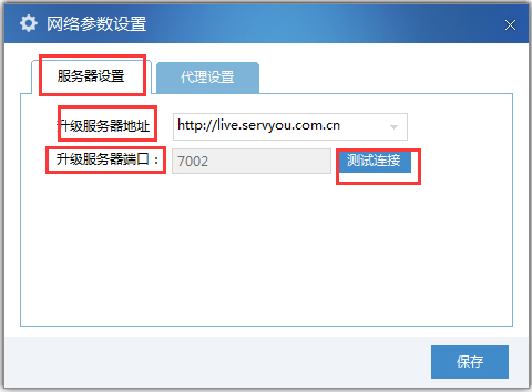测试连接:点击[测试连接]可以测试设置的地址和端口信息是否正确。