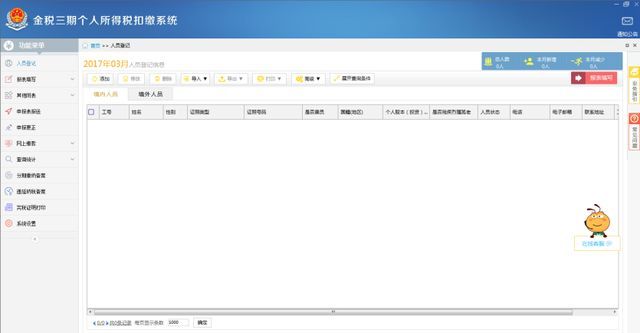 进入“金税三期个人所得税扣缴系统”界面,点击左侧向导栏的“人员登记”,人员登记可选择“添加”或者“导入”。