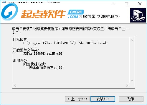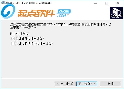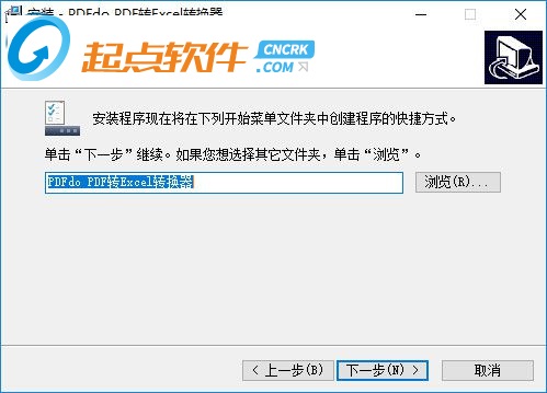 3、软件的快捷方式名字“PDFdoPDF转换成Excel转换器”默认就可以了,点击下一步