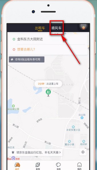 1.打开嘀嗒出行,在顶端选择顺风车,