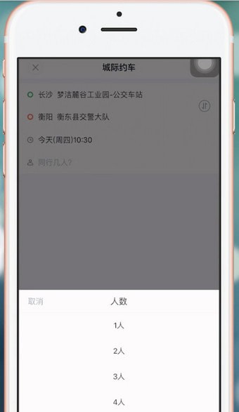3.选择乘车人数,选择好出发时间,确认无误之后点击发布即可。