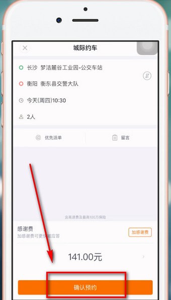 3. 这样基本上就差不多了,最后是可选项,可以选择@自己认识的拼友、加感谢费或者给车主留言;