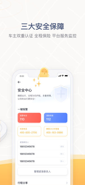--所有车主资质均严格审核,确保合法正确。--所有车主驾龄超过1年以上,无酒驾醉驾记录。--中意财险承保,嘀嗒出行为车主和乘客提供总赔偿限额20万的公众责任险保险保障。--提供实时平台服务监控,实时保障您的路线安全。--客服电话400-163-0886 ,工作时间为7:00-22:00,如不满意可为您全额退款。
