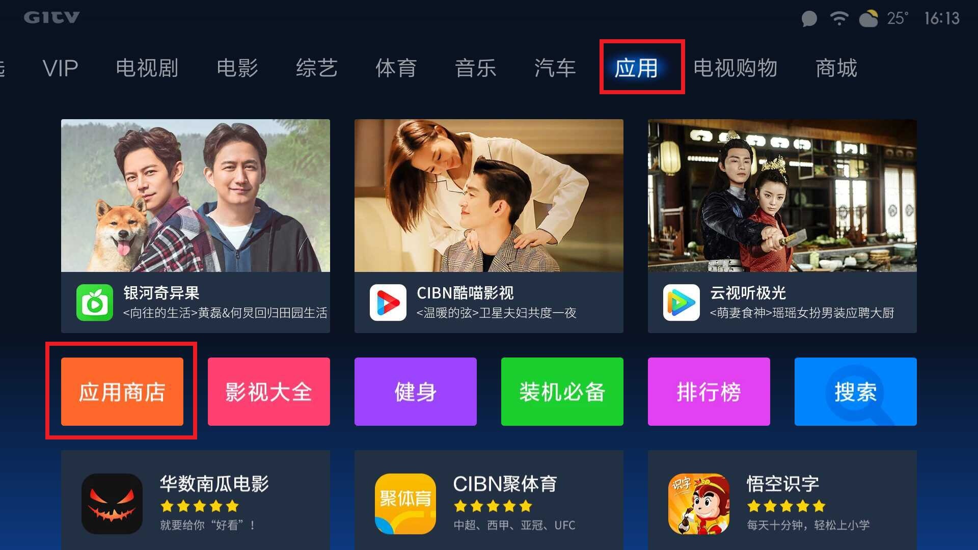 如何在小米盒子上安装电视猫1.在小米盒子桌面点击【应用】,在应用界面点击【应用商店】;