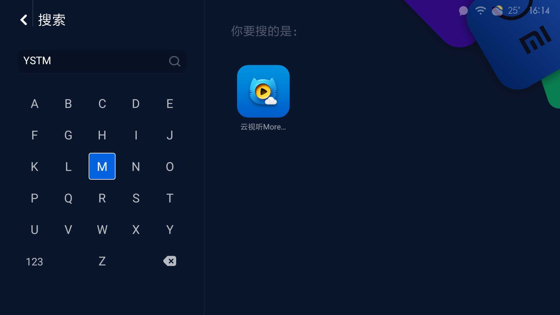 3.在搜索页面,输入“YSTM”,即云视听MoreTV首字母,即可搜索到电视猫视频(云视听MoreTV);