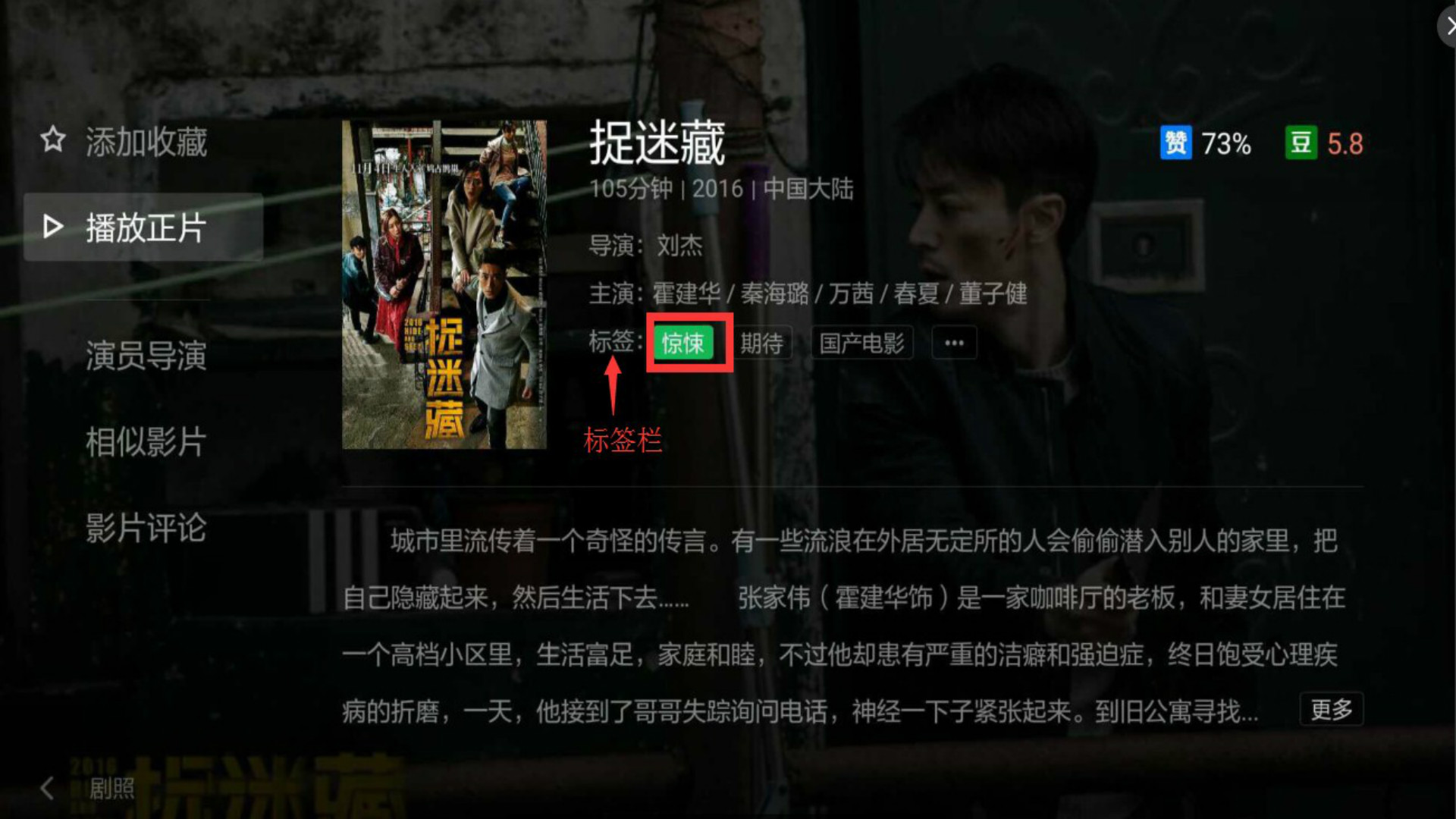 订阅标签1.打开电视猫视频(云视听MoreTV),选择您喜欢的影片,进入影片详情页,找到标签栏,选中您心仪的标签,点击进入该标签列表页面;