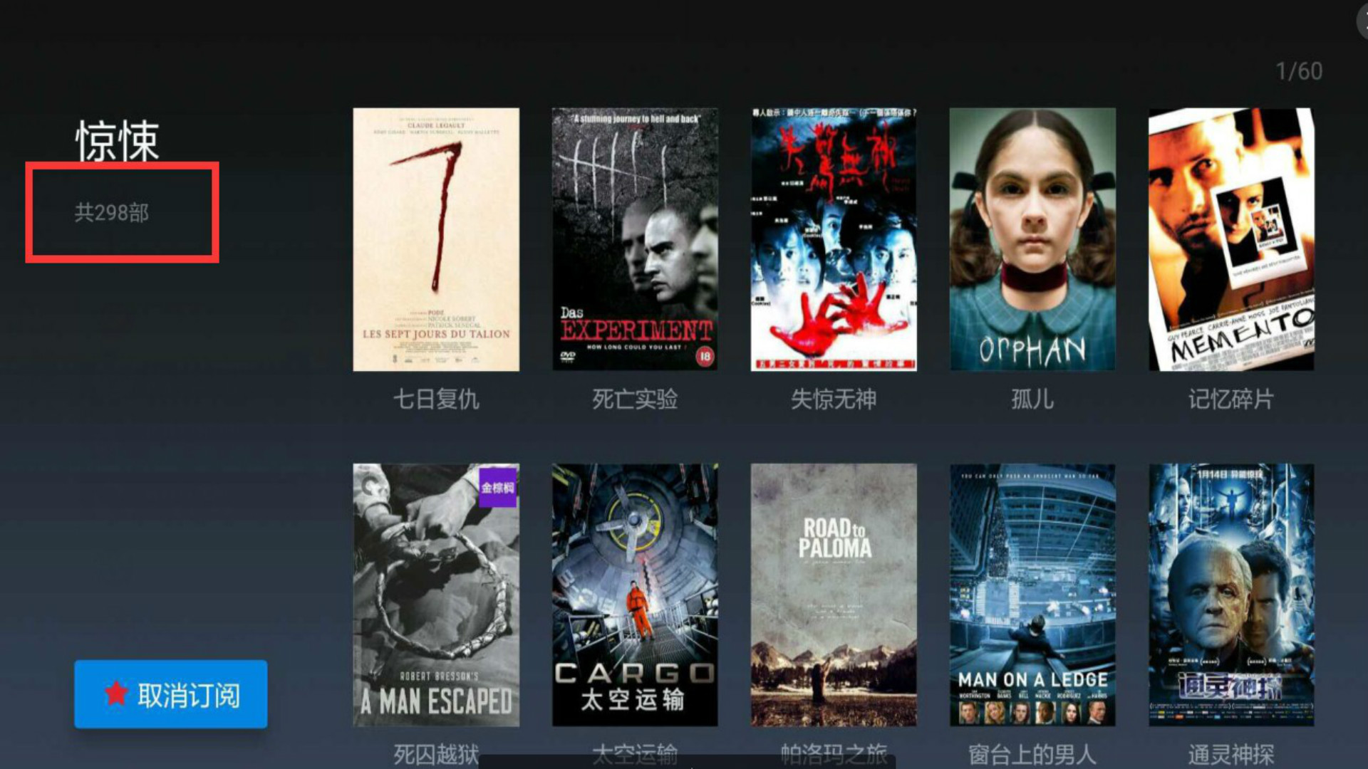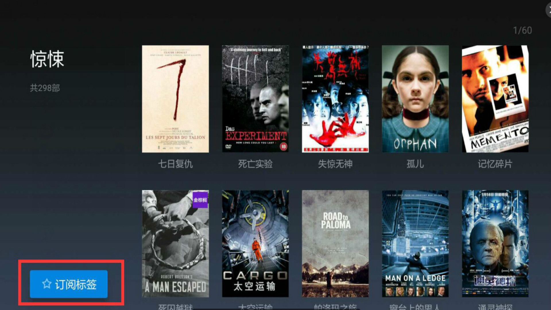 4.点击想要查看的标签,即可看到该标签下的所有影视剧集,例如小编收藏的惊悚类标签,足有298部之多,可以尽情看;
