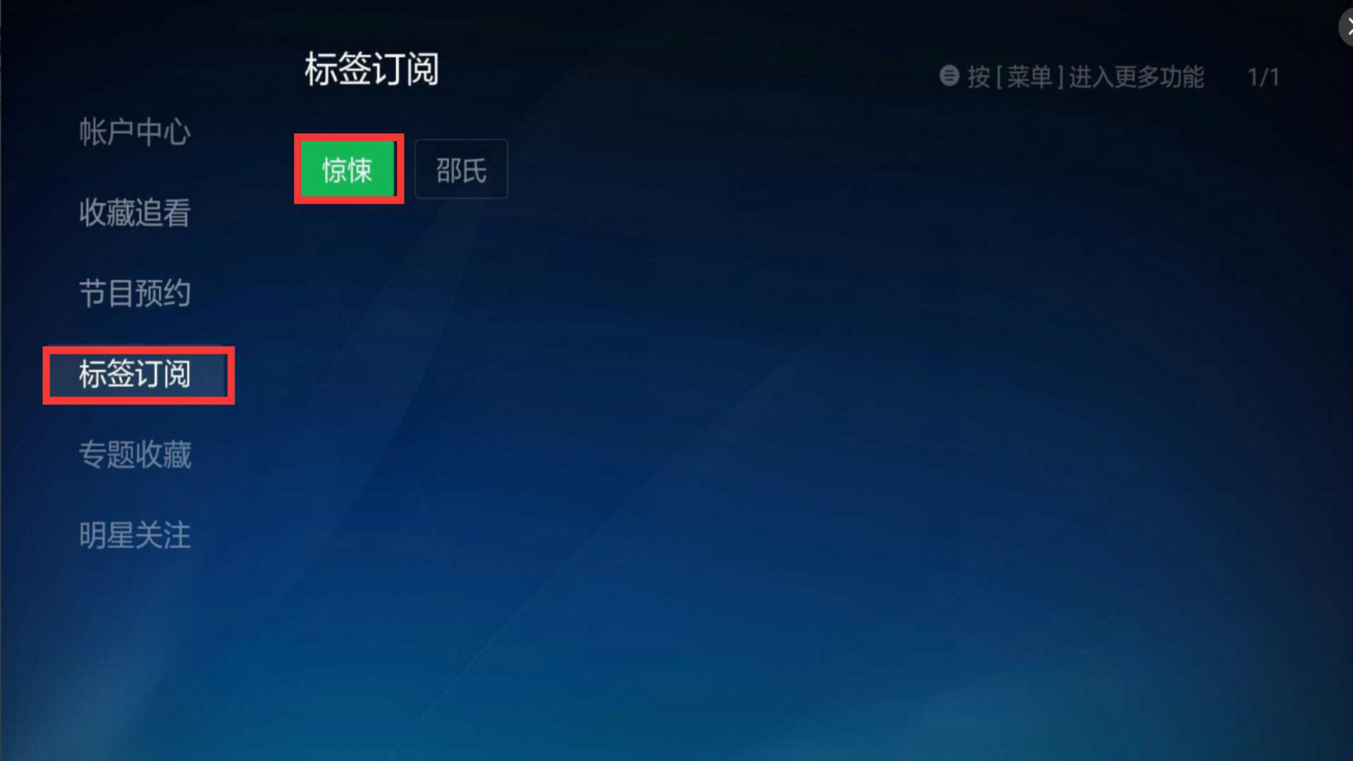 2.在标签列表页面,点击【订阅标签】按钮,该标签及该标签下的所有影视剧集即被自动收录在您的账户中;