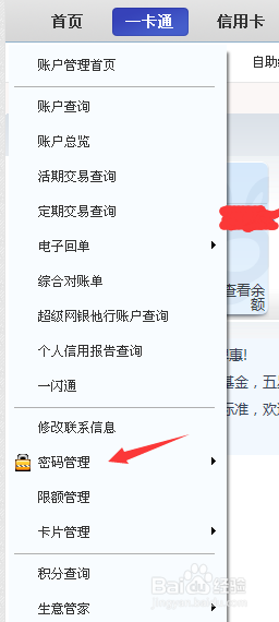 之后点击账户管理按钮,在下拉菜单中,找到密码管理菜单项